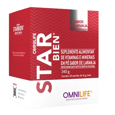 Suplemento alimentar de vitaminas e minerais em pó sabor de laranja.